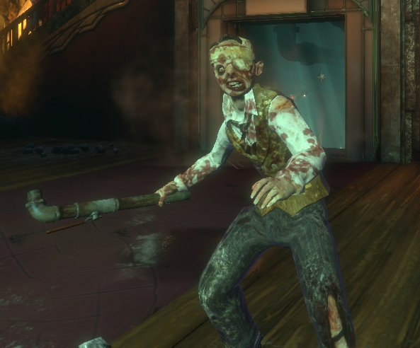 The plasmids so destabilized users that many descended into madness and violence. The Saturnine, an emergent cult, believed that they could communicate with ancient Gods through plasmids and the consumption of human blood. Those that overused plasmids, pushing the limits of the human mind and body, became Splicers—creatures not totally bereft of human sanity yet nonetheless vicious and physically marred by their transformation through ADAM. These are the creatures that now populate Rapture, interstitial figures that resemble zombies, existing at the boundaries between life and death. Many resemble corpses, stripped of their stereotypically humanistic appearances. Before the protagonist enters the Medical Pavilion, Atlas warns, “Frankly, I’m not ever sure if he’s [Dr. Steinman] still human” (2007). Just as the zombie “illustrates our doubts about humanity in an era in which the human condition may be experiencing a crisis of conscience as well as a crisis of consciousness” (Lauro & Embry 2008:91-92), the Splicer represents the viability of posthumanism, a population that has truly transcended the hallmarks of physical integrity and human consciousness.
