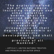 There are so many legal provisions that are implicated in resource extraction and in determining what private property rights there are to do such a thing. There’s a great argument, between the US and many many other countries, on who should have the right to go out and mine those outer space materials, whatever they may be. An argument that those materials should be the property of all states and countries. Of course, the people who put up the money and the risk to go out and do it believe that those resources are there for the taking, and you can read provisions in the Moon Agreement to support that reading and interpretation. Others disagree with it violently. So, if the Outer Space Treaty were to be re-negotiated today, everyone would be fighting over how the provisions should read. There would be no agreement.