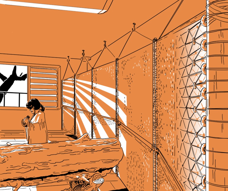 Each new drop of sweat was an indictment. The cords were now too slippery to grip and there were rope burns cutting across her palms. As she inspected her work, she noticed that there were gaps in the weave that were large enough to stick her tongue through. It was miserable.