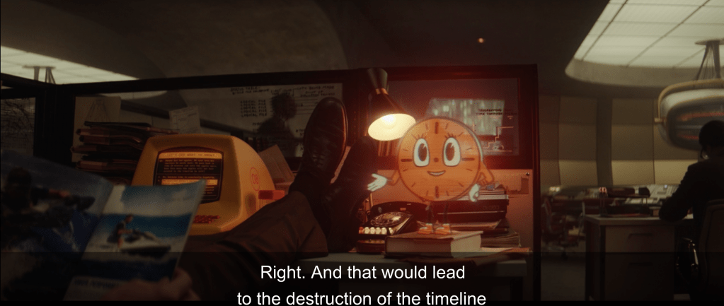 The importance of bureaucracy in temporal regulation is not necessarily new—there’s the Temps Commission in The Umbrella Academy, the Librarians in The Magicians, as well as Star Fleet’s attempt to intervene in the Temporal Wars of the 30th Century in Star Trek: Discovery. Even 12 Monkeys attempts to reshape the flow of time through carceral technologies and experiments on prisoners in exchange for shorter sentences. Damien Walter at The Guardian refers to the genre as “bureaumancy.” But what Loki emphasizes in particular are the ways that bureaucracies, through the performance of expertise, and its hegemony over the narrative of a sacred and singular timeline, have physical consequences on the lived realities of those regulated by these very bureaucracies. As David Mosse puts it in Cultivating Development, “What is usually more urgent and more practical is control over the interpretation of events” (2005, 8).